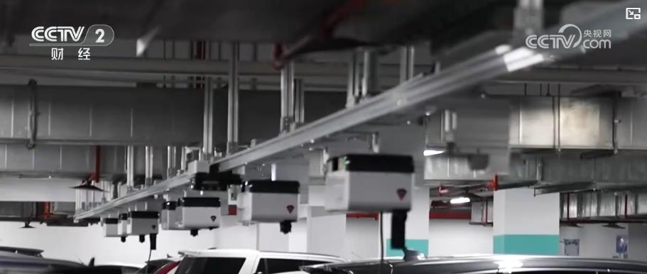 在江苏苏州一小区的地下停车场,一种新型可移动式的共享充电桩近日投入使用,一条导轨贯穿50个车位,机器人在导轨上穿行,抓取一台空闲充电桩,移动到刚刚停放的电动汽车后上方,车主取下充电枪即可为电动汽车充电。