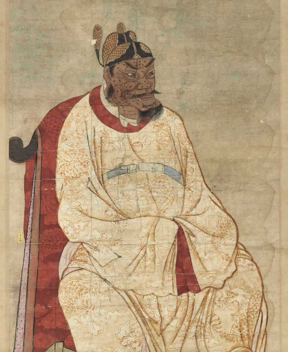 台北故宫博物院藏的明太祖像(局部)佚名 明代